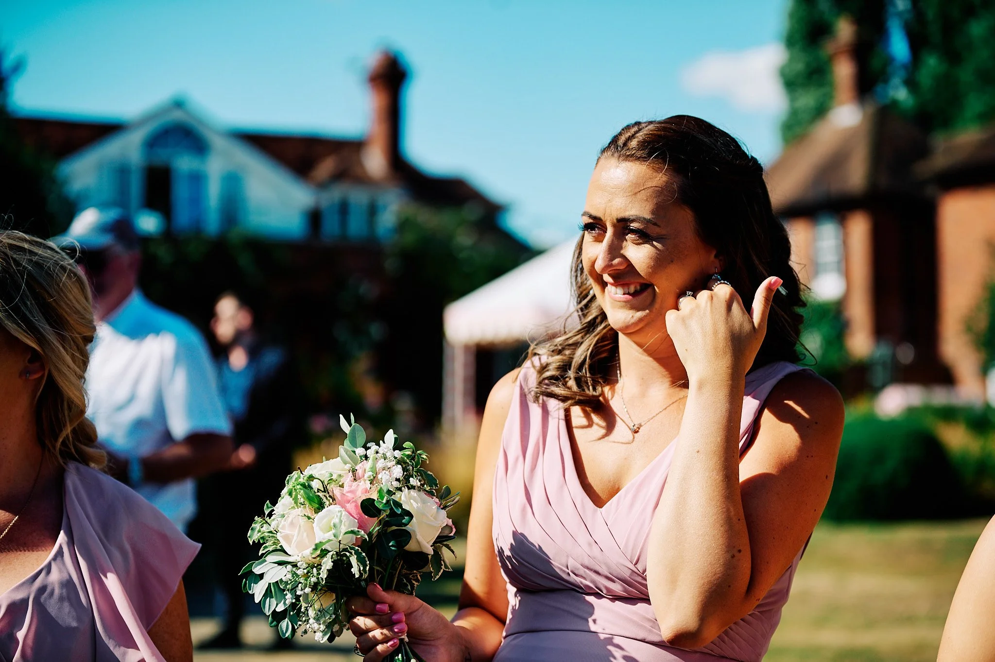 As the confetti settled reception drinks were poured and delicious canapes were served to guests by the attentive staff of Micklefield Hall. Whilst the sun beat down we organised some family photos on the lawn. I was particularly grateful for a kind bridesmaid who made sure I had suncream! Katherine and Evren then took some time to relax and unwind with their guests before dinner was served. Joined by super cool Dean Sherwood, who was taking cinematic video, we’d sneak Katherine and Evren out again after their main course to take a few quick shots in the beautiful early evening sunshine.